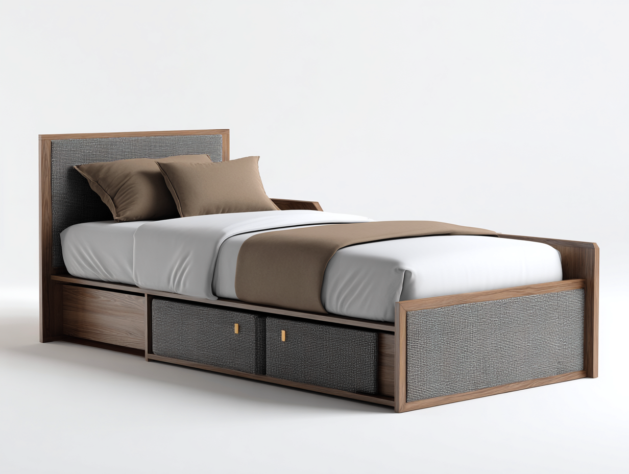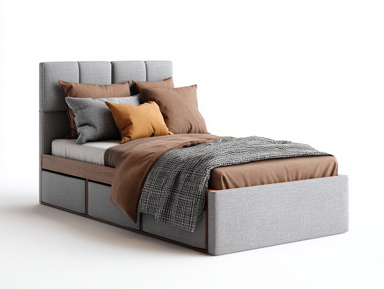 Lit simple - bois-textile - 209x98x100 cm - gris-marron - style moderne
